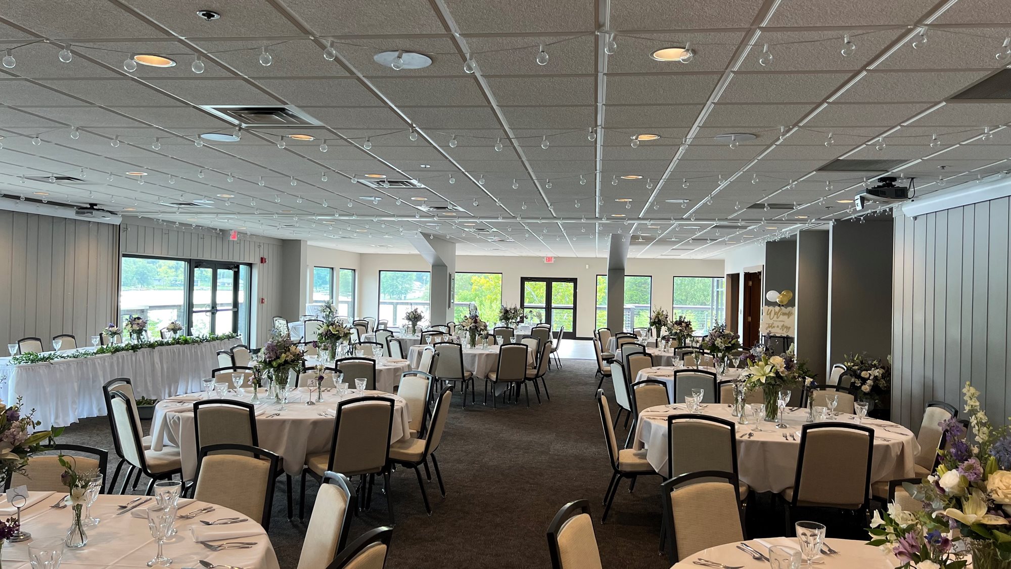 Capacity: Up to 152 seating on carpet only. Up to 184 with seating on the dance floor.